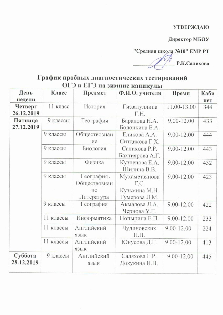График новогодних мероприятий на 2019-2020 учебный год 31.12.2019