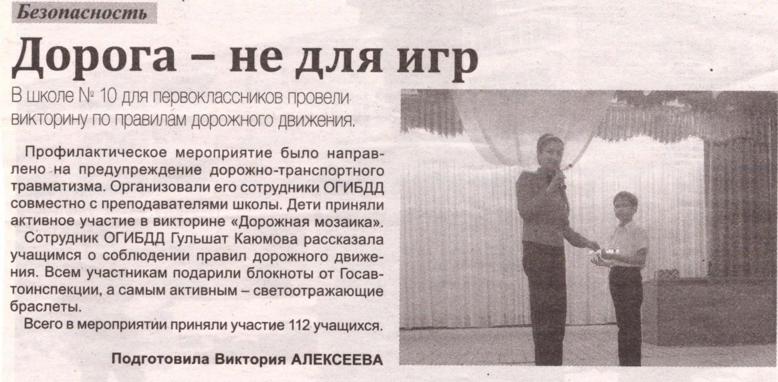 ►Алексеева В. Дорога - не для игр: В школе для первоклассников провели викторину по правилам дорожного движения // Новая кама. - 2014. - 24 декабря Посмотреть