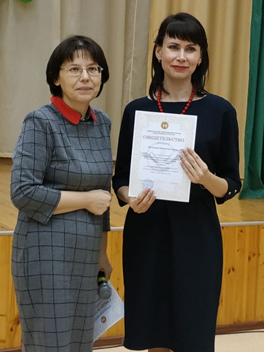 - Ильдрханова З.М., учитель татарского языка и литературы МБОУ «Гимназия №1-Центр национального образования » ЕМР РТ в номинации «Учитель родного языка»;
