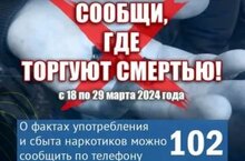 В период с 18 по 24 марта 2024 года проводится первый этап Общероссийской акции «Сообщи, где торгуют смертью». Акция проходит ежегодно в целях привлечения общественности к участию в противодействии незаконному обороту наркотиков и профилактике их немедицинского потребления, организации работы по приему сообщений на телефоны горячей линии, оказанию квалифицированной помощи и консультаций по вопросам лечения и реабилитации от наркозависимости. В рамках этой акции в школе проводился ряд мероприятий : классные часы, конкурсы рисунков, встречи с медицинским работником.