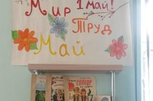 Тематическая книжная выставка посвященная празднованию 1 мая "Мир, труд, май!"