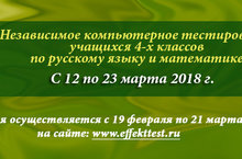 в период с 12 по 23 марта 2018 годапроводится независимое компьютерное тестирование по русскому языку и математикеучащихся 4-х классов -