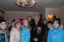 Сегодня, в преддверии Дня Защитника Отечества, учащиеся нашей школы поздравили ветеранов Великой Отечественной войны. На фото: ветеран войны Колесов Григорий Кузьмич и ученики 6 А класса.
