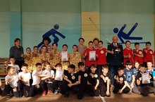 В рамках празднования Дня Победы коллектив нашей школы традиционно проводит городской этап военно-спортивного турнира «Мальчиши-кибальчиши», посвященного памяти А.Н.Епанешникова. В этом году борьба была очень упорной. На станциях ребята-четвероклашки показали умение оказывать первую помощь, знание биографии и подвига А.Н.Епагнешникова, страниц ВОВ, свою спортивную подготовку. В итоге первое место разделили команды МБОУ СОШ №1 и МБОУ СОШ №3., на 2 месте команда гимназии №1, на 3 месте команда гимназии №2. Главный судья турнира офицер запаса Киселев С.В. вручил переходящий кубок победителям.