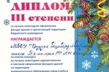 Дипломом III степени награждена школа за лучшее новогоднее оформление фасада зданий и прилегающей территории бюджетного учреждения