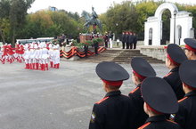 Сегодня в Елабуге прошли торжественные мероприятия в рамках 235-летнего юбилея известной кавалерист-девицы Надежды Дуровой. Митинг прошел на Троицкой площади. В честь праздника здесь был выставлен почетный караул и дан оружейный салют. В торжествах приняли участие и 10 потомков Надежды Дуровой. Они приехали из Франции, Украины и других городов России. Многие из них встречаются именно на юбилейных мероприятиях, посвященных их знаменитой родственнице. Каждые пять лет в Елабуге проходят торжества в честь Надежды Дуровой, которая прожила в нашем городе последние 30 лет своей жизни.Отдали честь памяти знаменитой калерист-девице и кадеты.