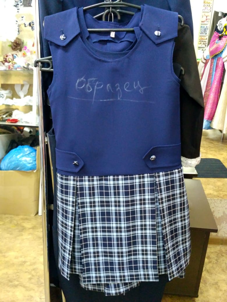 Кызларөчен мәктәп формасыак блузка, ачык зәңгәр шакмаклы кара зәңгәр төслесарафаннан тора. Сарафанны кара зәңгәр төсле жакет белән тулыландырыргабула.