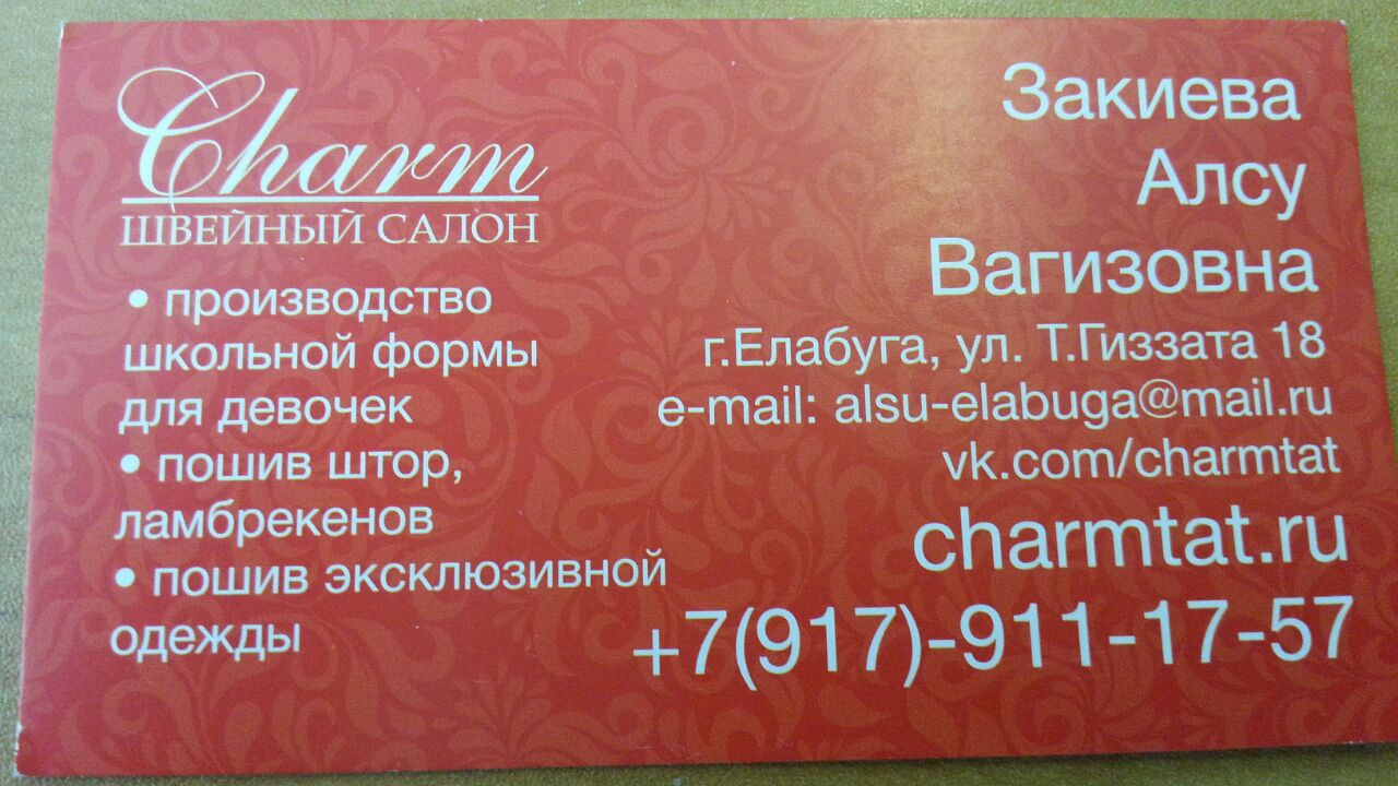Заказ формы: швейный салон «Charm»,ул. Т. Гиззата 18-89; рынок 6 мкр, пав.8