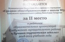 Алабуга муниципаль районы белем бирү оешмалары рейтингында «2018-2019 нчы елларда иң яхшы туристлык мәктәбе» номинациясендә 2 нче урынны алган укучыларны һәм педагогик коллективыбызны котлыйбыз. Афәрин!