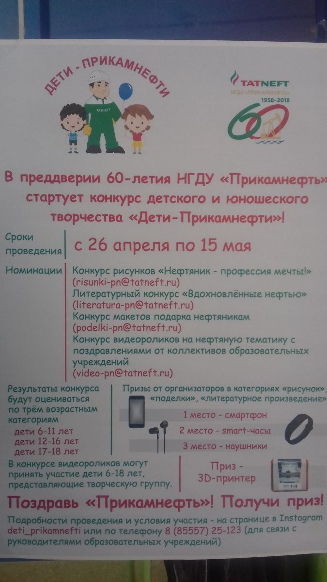 НГДУ «Прикамнефть» оешмасының 60 еллыгы бәйрәме алдыннан “Прикамнефть балалары “ балалар һәм яшьләр иҗаты бәйгесе башланды.