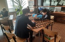 Укучыларга "ребусны табыгыз һәм аны чишегез"квесты тәкъдим ителде. Шулай ук тәнәфестә теләге булган һәркем "яссылыктан-күләмгә" мастер-классында катнаша алды, анда кәгазь битеннән балалар куб, тетрэдрлар, пирамида җыйдылар.