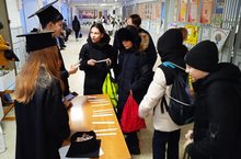 Учащимся был предложен квест "Найди ребус и разгадай его". А так же на переменах каждый желающий мог поучаствовать в мастер-классе " Из плоскости в объем", где ребята из листа бумаги собирали кубы, тетраэдры, пирамиды.