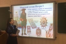 Гражданлык-патриотик тәрбия айлыгы кысаларында, 7 нче "В «сыйныфында»Ватан сакчысы" дигән сыйныф сәгате узды. Сыйныф җитәкчесе Герасимова Л. Н.балаларга халык батырлыклары турында сөйләде, батырлык һәм намус темасына әңгәмә үткәрде.