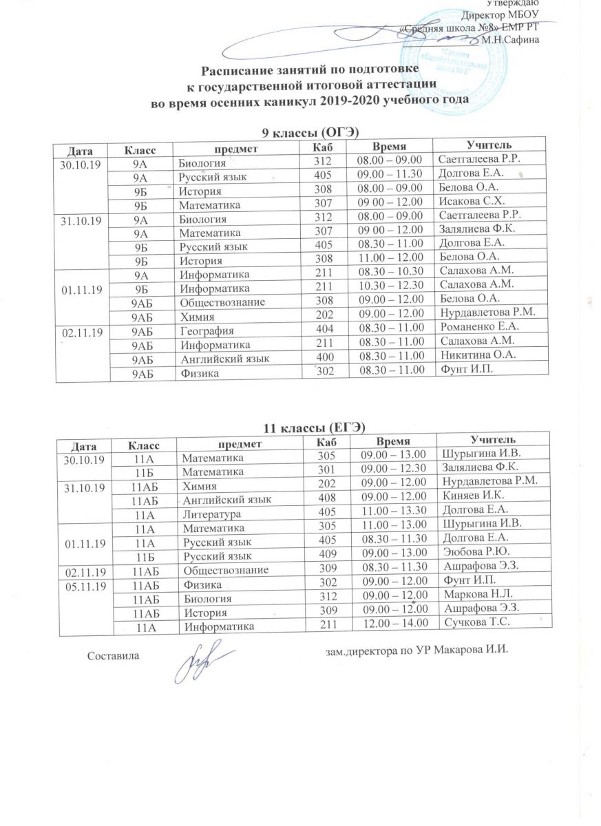Расписание дополнительных занятий по подготовке к ОГЭ, ЕГЭ в осенние каникулы