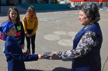 13 сентябрь көнне ЮИД отряды,педагог-оештыручы Мазняк Л.И. җитәкчелегендә, ЮХИДИ инспекторы Штенников Д. А. белән берлектә, «Баланы кулга ал»дигән социаль акция үткәрделәр. Акция куркынычсызлык айлыгы кысаларында үткәрелде. Балалар җәяүлеләргә тротуарда кисәтүче язуны ясадылар.