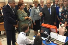 Почетным гостем фестиваля стал первый Президент Татарстана Минтимер Шаймиев. Перед началом пленарного заседания Минтимер Шаймиев в сопровождении заместителя Председателя Госсовета РТ Татьяны Ларионовой ознакомился с тематической выставкой в рамках национального проекта «Образование». В рамках этой выставки учащиеся нашей школы: Салахов Ильяс и Мазняк Руслан представили проект "Школьный технопарк "Кванториум". С 2019 года проект будет реализовываться по 4 направлениям: энержиквантум, биоквантум, экоквантум и робоквантум для учащихся начальных классов.5 август көнне Алабуга шәһәр мәдәният йортында КФУ Алабуга институты тарафыннан оештырылган «үзгәрешләр мәктәбе» темасына мәктәп укытучыларының X юбилей фестивале ачылды.Фестивальнең хөрмәтле кунагы Татарстанның беренче Президенты Минтимер Шәймиев булды. Пленар утырыш башланыр алдыннан Минтимер Шәймиев ТР Дәүләт Советы Рәисе урынбасары Татьяна Ларионова белән бергә «Мәгариф»милли проекты кысаларында оештырылган тематик күргәзмә белән танышты. Әлеге күргәзмә кысаларында безнең мәктәп укучылары: Сәлахов Ильяс һәм Мазняк Руслан "Кванториум мәктәп технопаркы"проектын тәкъдим иттеләр. 2019 елдан башлап проект 4 юнәлеш буенча гамәлгә ашырылачак. -