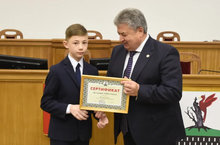 21 мая 2019 г. на городской планерке состоялась торжественная церемония награждения школьников стипендией Главы Елабужского муниципального района. Денежные сертификаты из рук главы получили 45 призёров олимпиад в том числе и учащийся нашей школы - Мазняк Руслан. Поздравляем!!
