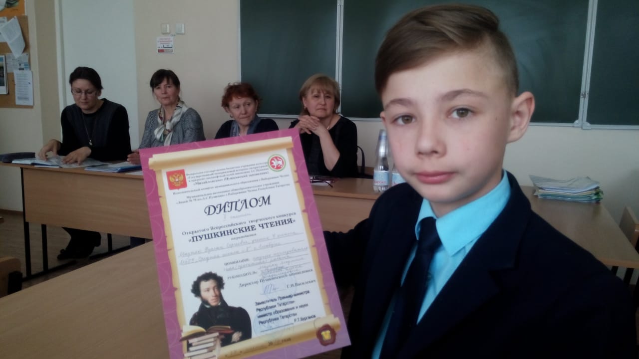 Очередную победу одержал учащийся 7а класса Мазняк Руслан. Сегодня он стал победителем 2 степени Открытого Всероссийского творческого конкурса "Пушкинские чтения". Поздравляем!!!!