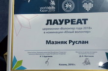 10 декабря в Центре культуры и спорта «Московский» города Казани состоялось вручение премии «Волонтер года». Это событие стало заключительным в череде мероприятий, посвященных Году волонтера в Республике Татарстан. Итоги Года добровольца были подведены в 17 номинациях. Ученик 7 а класса Мазняк Руслан стал лауреатом в номинации "Юный волонтер".