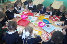Приближается замечательный праздник - Новый год. Каждый ждёт его с нетерпением и особым трепетом. Это самый светлый, радостный и удивительный праздник. Новый год у нас ассоциируется со снегом, с пушистой, сверкающей елкой, Дедушкой Морозом. И вот таких замечательных Дед Морозов нарисовали цветным песком учащиеся группы продленного дня (руководитель - Мазняк Л. И). В группе прошел настоящий праздник, с чаепитием, концерными номерами.