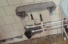 В нашей школе начались ремонтные работы санузлов. Сегодня производят демонтаж раковин и унитазов.