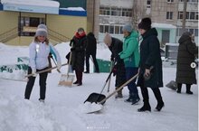 Учителя и учащиеся старших классов присоединились к акции "Любимый город", в рамках которой очистили территорию школы от снега.