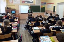 Светлана Анатольевна провела увлекательную беседу о зимующих птицах. Дети посмотрели обучающее видео, приняли участие в викторине.Бүген 2 нче Г сыйныфында "Кышын кошларны ашатыгыз"дигән чара узды. Сыйныф сәгатенә "Түбән Кама" милли паркы хезмәткәре Светлана Анатольевна чакырылды. Светлана Анатольевна кышлаучы кошлар турында мавыктыргыч әңгәмә үткәрде. Балалар видео карадылар, викторинада катнаштылар.