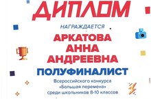 Аркатова Анна участвовала в полуфинале всероссийского конкурса "Большая перемена" среди школьников 8-10 классов.