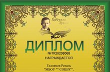 Галлямов Реналь занял 2 место в республиканском конкурсе творчества "Тукай в наших сердцах" в номинации "Художественное творчество - стих". Руководители: Нотфуллина С.Х., Мазняк Л.И.