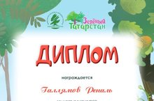 Галләмов Реналь педагог-оештыручы Мазняк Л.И. җитәкчелегендә "Яшел Татарстан" республика акциясендә актив катнашты һәм диплом белән бүләкләнде.