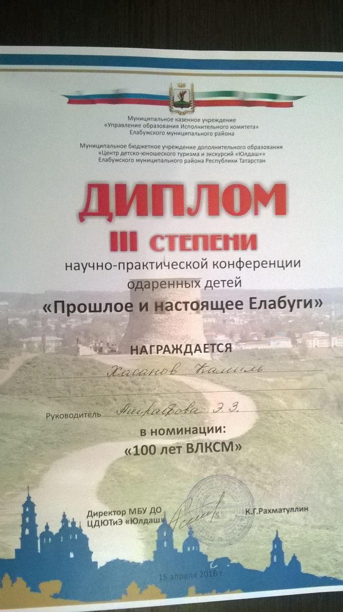 Материалы к 100-летию ВЛКСМ "Комсомол в моей семье, селе, городе"