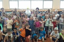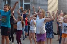 Концертная программа - закрытие лагеря. Дети подготовили различные номера--стихи, песни танцы.
