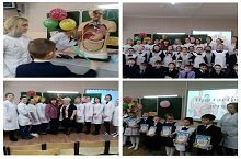 Для учащихся 1-х классов прошло внеклассное мероприятие по теме: «Здоровое питание». Были приглашены студенты медицинского училища со своим руководителем Бекмухаметовой А.Я. Большое внимание было уделено полезным продуктам,содержащим витамины, режиму питания. Студенты провели обзор внутренних органов человека, а именно ЖКТ. На макете «человека» дети показывали эти внутренние органы. Будущие мед.работники загадывали загадки,провели викторину, музыкальную физкультминутку,показали интересный поучительный мультфильм. Дети остались довольными. Очень много полезного взяли для себя, как вырасти большим,здоровым, крепким,умным,развитым. В конце нашего мероприятия каждый ученик получил закладку - раскраску и смайлик с полезным советом. Все прошло успешно!