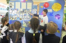 12 апреля в школе №9 г.Елабуги прошли классные часы с 1- 11 класс, посвященные Дню космонавтики. Главным героем в этот день естественно стал Юрий Алексеевич Гагарин, первый человек в мировой истории, совершивший полет в космическое пространство. В рекреации была организована выставка рисунков «Наш космос» и стенд «108 минут», где активисты РДШ ознакомили ребят об истории полета первого человека в космос. Учащиеся начальных классов рисовали рисунки и делали аппликацию.