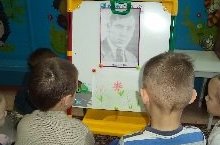 Сегодня в нашем детском саду прошло тематическое занятие, посвященное дню рождения Мусы Джалиля. Была представлена презентация о жизни поэта. Воспитатель Паитова А.И. ознакомила детей с биографией и творчеством Мусы Джалиля и прочитала его стихи. / Туган илебезне дошманнардан яклап, сугыш кырларында ятып калучы геройларыбыз күп. Шуларның берсе - Муса Җәлил. Бүген аның туган көне. Шул уңайдан, шагыйребезнең тормыш юлына, иҗатына багышланган тематик эшчәнлек узды. Балалар презентация карадылар хәм шигырьләр тыңладылар.