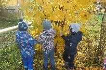 Вот и наступила Золотая Осень! Дошколята наслаждаются последними теплыми днями. Сегодня вместе с воспитателем решили прогуляться и полюбоваться природой на территории школы. Кругом красота и уют – цветущие клумбы, подстриженные газоны. Дети с интересом разглядывают плоды шиповника. «Ой, какой он колючий!» - делают они новое открытие. А у беленькой березы, листик мал, но золотой! У рябины лист резной, а у клена расписной.