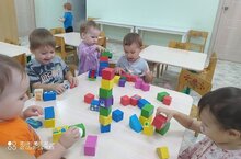 Каждый день в группе раннего возраста малыши учатся чему-то новому и интересному. Сегодня ребята учились строить заборчики и ставить машинки в гараж. Очень занимательно и весело играть с разноцветными кубиками. Эта работа необходима для развития понимание речи и активизации словаря, для умения различать и называть цвета (красный, синий, желтый); И конечно это необходимо для того, чтобы научить ребенка в выполнении заданий воспитателя и способствовать проявлению самостоятельности в игре./ Кечкенәләр төркемендә көн саен яңа һәм кызыклы нәрсә өйрәнәләр. Бүген балалар коймалар төзергә һәм машинкаларны гаражга куярга өйрәнделәр. Төсле кублар белән уйнау бик мавыктыргыч һәм күңелле. Бу эш үсеш өчен кирәк Сөйләмне аңлау һәм сүзлекне активлаштыру, төсләрне аера һәм атый белү өчен (кызыл, зәңгәр, сары);
