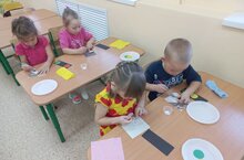 Занятие аппликацией очень увлекательно, а если из разных кусочков создавать светофор — это просто волшебство. Вот именно так наши воспитанники в игровой форме изучают правила дорожного движения./ Аппликация белән шөгыльләнү бик мавыктыргыч, ә төрле кисәкләрдән светофор ясау - тылсымчы гына. Менә шулай безнең тәрбияләнүчеләр уен формасында юл йөрү кагыйдәләрен өйрәнәләр.
