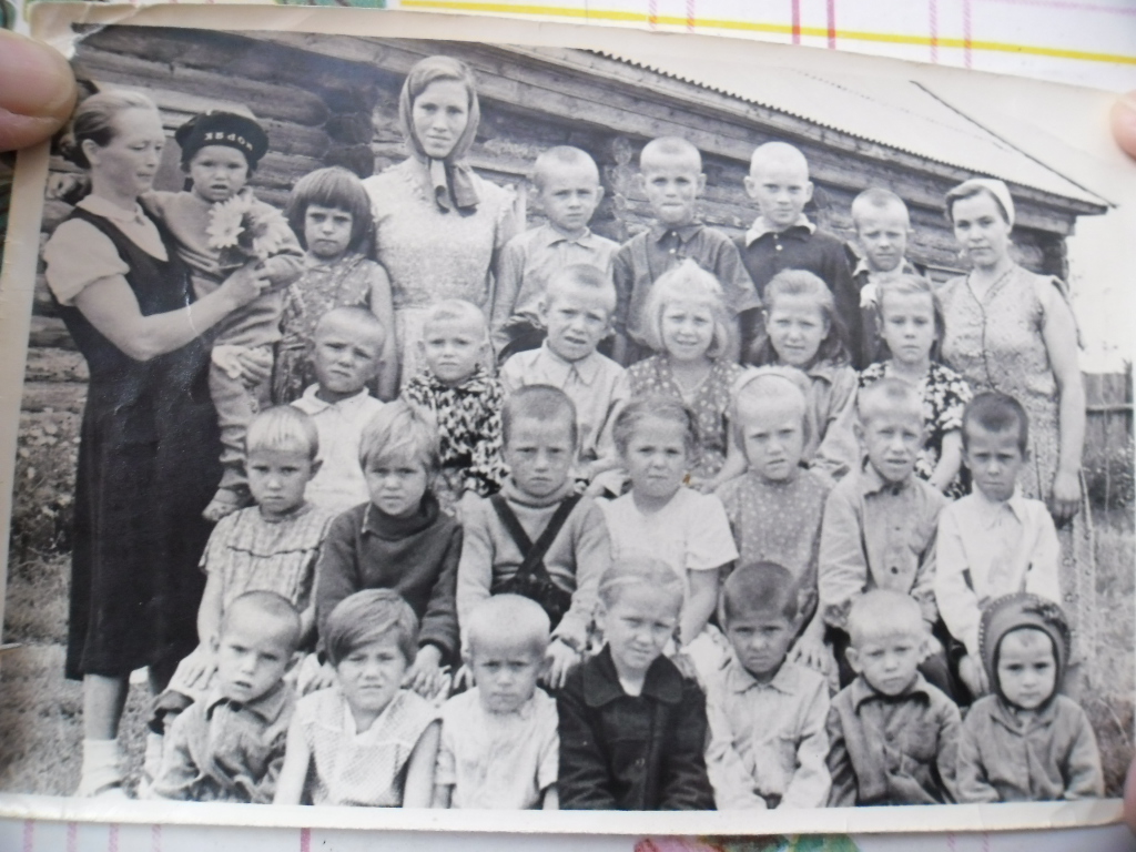 Общее фото сотрудников и воспитанников Танаевского детского сада в послевоенные годы.Сотрудники слева на право: