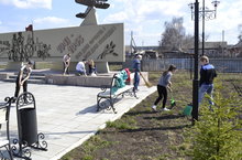 В школе стартует добровольческая акция "Весенняя неделя добра - эстафета добрых дел". И первым делом послужило - уход за памятником труженикам тыла.