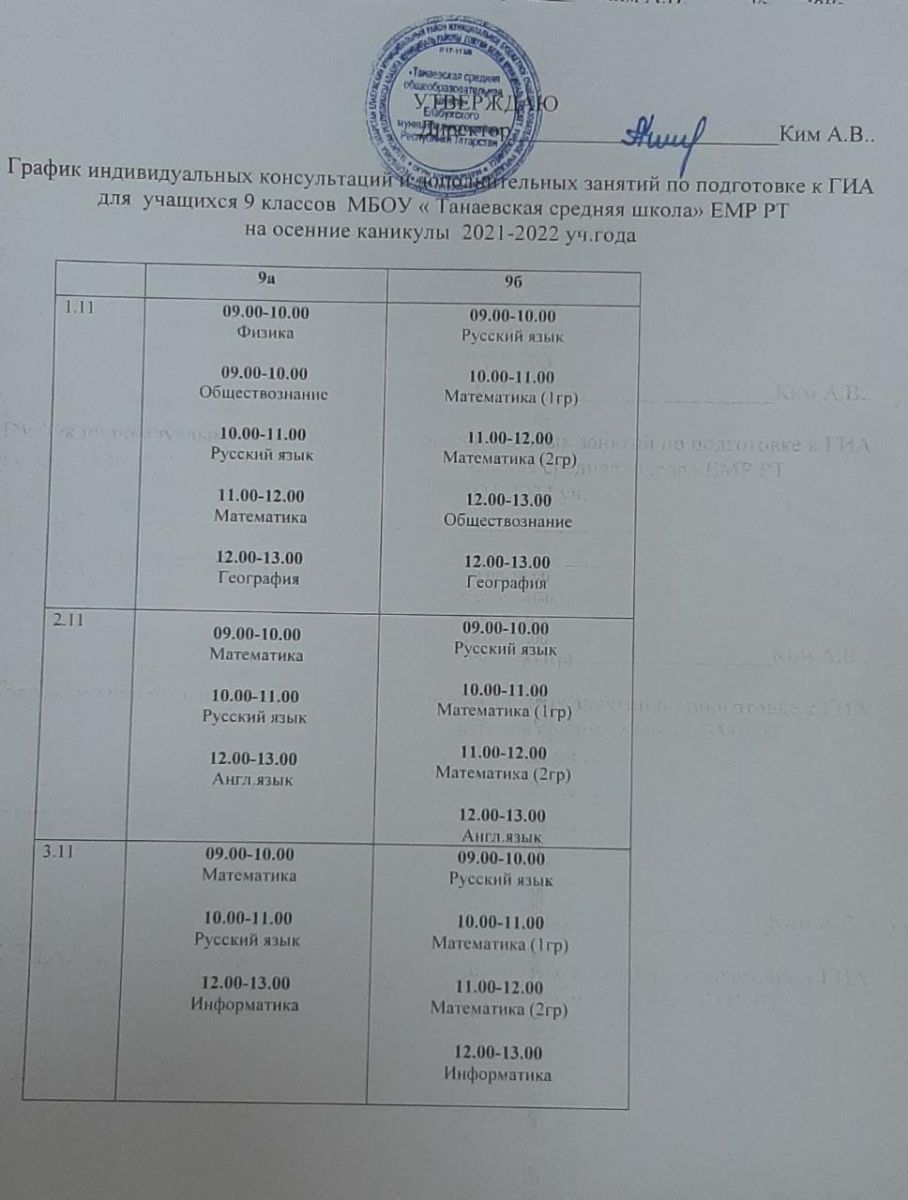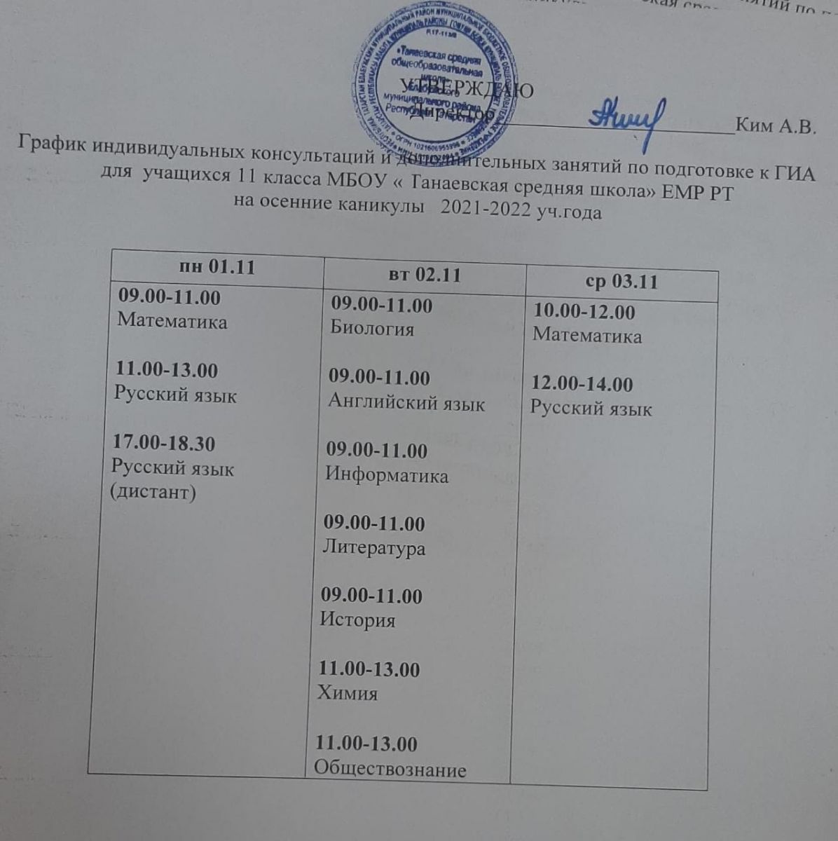 График консультаций на осенние каникулы 01.11.2021