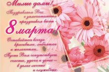 Дорогие наши мамы, бабушки, тети, любимые педагоги, очаровательные девчонки! В Международный женский день, мы желаем вам всего самого светлого и прекрасного! Пусть весна расцветает в душе и наполняет ее радостью и красотой! Пусть этот праздник оставит множество ярких впечатлений и красивых, романтических моментов! Пусть невозможное - станет возможным! Пусть судьба вас любит и преподносит только хорошие подарки. Друзья будут всегда надежны, а близкие здоровы и счастливы. Мы вас очень любим и ценим! С праздником!