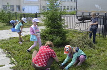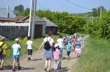 Мәктәп яны лагерьларының отрядлары «экологик камап алу» акциясендә актив катнашты. Балалар тыл хезмәтчәннәренә куелган һәйкәл янындаы территориядә чүп-чарны җыйдылар, чәчәкләр утырттылар, чабылган үләнне җыештырдылар.