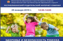 Во исполнение плана работы Министерства образования и науки Республики Татарстан 25.01.2019 с 12.30 до 14.00 состоится Республиканский родительский интернет-семинар «Здоровье и безопасность ребенка». Он-лайн трансляция собрания будет вестись на сайте Казанского инновационного университета имени В.Г.Тимирясова по адресу: https://ieml.ru/