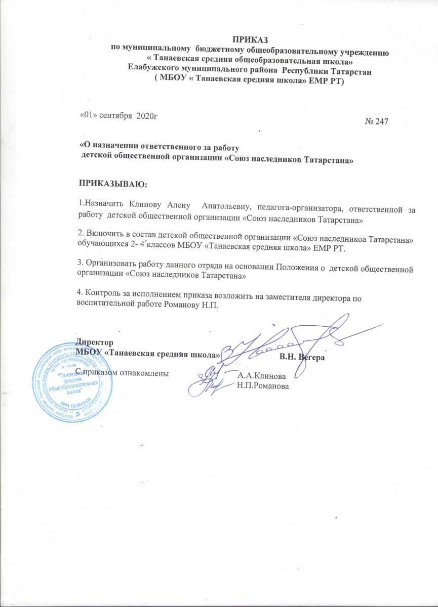 Муниципальное бюджетное общеобразовательное учреждение «Танаевская средняя общеобразовательная школа» Елабужского муниципального района Республики Татарстан/ Татарстан Республикасы Алабуга муниципаль районы Танайка авылы муниципаль бюджет гомуми белем бирү учреждениесе «Урта гомуми белем бирү мәктәбе»