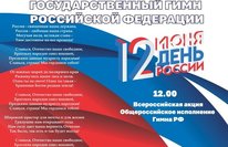 12 июня 2020 года в ходе праздничного концерта в честь Дня России (точное время будет обозначено дополнительно) жители всех регионов страны с балконов или у окон своих домов исполнят гимн России. Приглашаем присоединиться к данной акции. Исполнение гимна Вы можете записать на видео и опубликовать в социальных сетях с хэштегом #МыРоссия