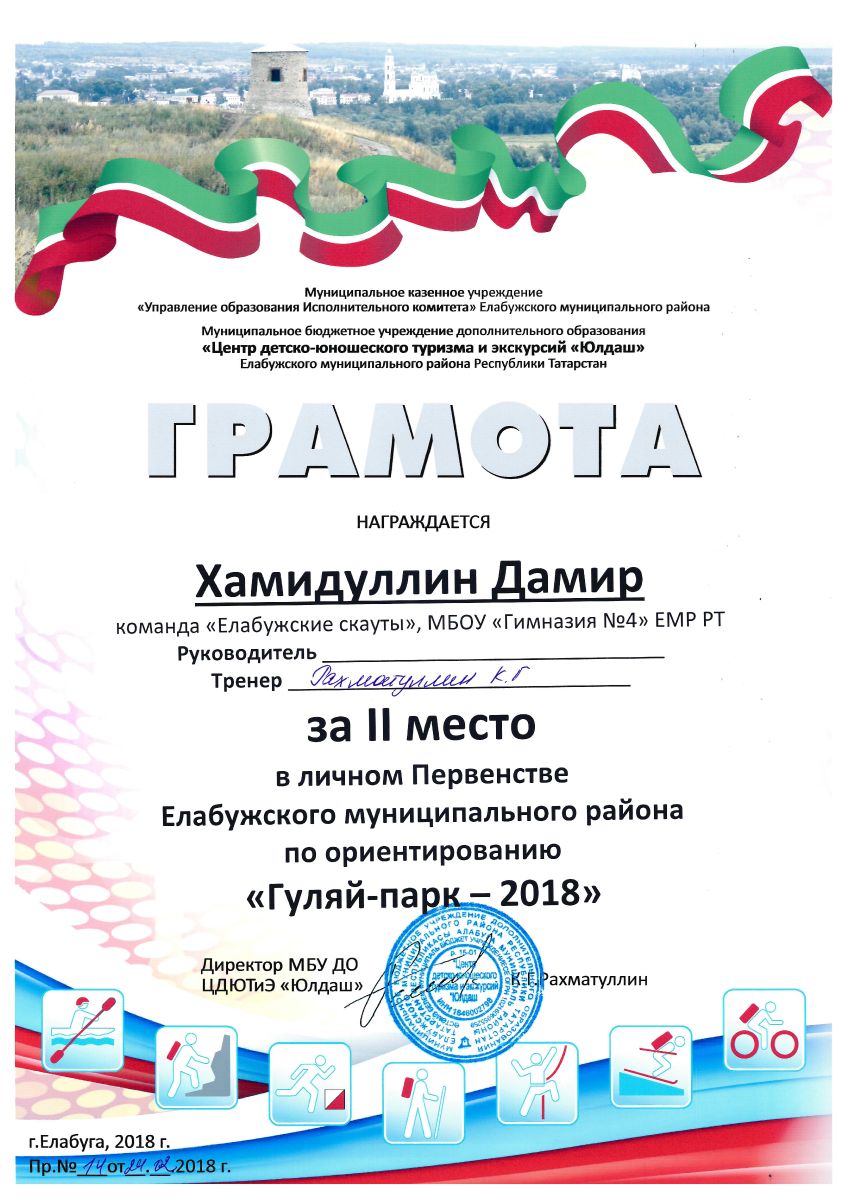 Грамота за 2 место "Гуляй-парк - 2018" Хамидуллин Дамир.jpg