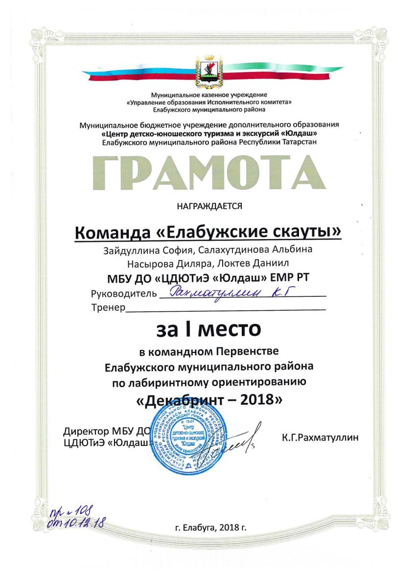 Грамота за 2 место Елабужские скауты "Декабринт-2017".jpg