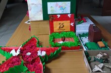 Бөек Җиңүнең 75 еллыгына багышланган кул эшләреннән мәктәптә күргәзмә оештырылды.