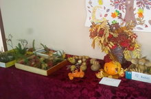 В школе учащиеся изготовили композиции из осенних материалов. Осенние плоды очень богаты и разнообразны. Тыква лучше всех остальных плодов подходит для создания осенних композиций. Ее дополнительно задекорировали цветами и просто оформили очень нежной и красивой резьбой. Учащиеся оформили выставку. Молодцы!